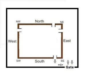 One could locate the door in the east wall. It is suggested keeping it North-East side.